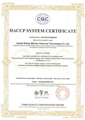 公司證書公司通過了ISO9001:2015、HACCP認證和FSSC22000等質量安全管理體系認證。